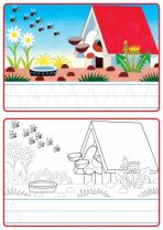- some themes additionally include enclosed graphomotoric elements such as snails, dashes, wavy lines, etc. -in addition to colouring in, children also get to practice their writing skills while learning naturally